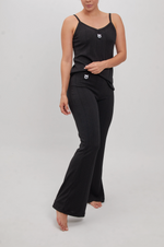 El pantalón Black Moon está diseñado para que te sientas cómoda y estilizada al mismo tiempo. Confeccionado en franela suave, su corte bota campana realza la silueta mientras brinda total libertad de movimiento. Perfecto para días relajados en casa o looks comfy con un toque moderno.