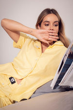 Relájate con estilo. Nuestra camisa en algodón 100% natural es tan cómoda que se convertirá en tu favorita para dormir y tan versátil que podrás usarla en cualquier plan casual. Su tono amarillo pastel aporta un toque fresco y delicado, perfecto para los días soleados o para darle luz a tus momentos de descanso.